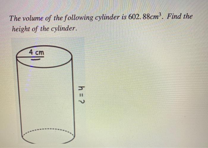 Height of a Cylinder Overview Formula Examples Video new arrivals, How To Calculate The Height of a Cylinder Given The Volume Radius Diameter new arrivals, Calculating the Height of a Cylinder given Its Total Surface Area new arrivals, Calculate the Height of a Cylinder When Given Its Volume and Radius new arrivals, Height of a Cylinder Calculator Formula new arrivals, Finding the Height of a Cylinder given Its Total Surface Area and Its Base Diameter new arrivals, Find The Height Of A Cylinder When Given The Volume And Radius new arrivals, How to find the height of a cylinder when given the volume and new arrivals, Finding the Height of a Cylinder Given Its Volume new arrivals, Height of a Cylinder Definition Formula Examples new arrivals, Ex 11.4 5 Chapter 11 Class 8 Maths Teachoo new arrivals, How to Calculate the Volume of a Cylinder 4 Steps with Pictures new arrivals, How Do You Find the Height of a Cylinder if You Know the Volume new arrivals, Height of a Cylinder Overview Formula Examples Lesson new arrivals, Volume of a Cylinder GCSE Maths Steps Examples Worksheet new arrivals, Solved The volume of the following cylinder is 602.88cm3. Chegg new arrivals, Cylinder A has radius 1 m and height 4 m. Cylinder B has radius 2 new arrivals, Find the height of a cylinder whose radius is 7 cm and the total new arrivals, Height of a Cylinder Overview Formula Examples Lesson new arrivals, How to Calculate the Volume of a Cylinder 4 Steps with Pictures new arrivals, Find the height of the cylinder whose volume is 1.54 m and new arrivals, Volume of a Cylinder on Vimeo new arrivals, The radius and height of a cylinder are in the ratio 3 2 and its new arrivals, Solved Find the height of the cylinder. Round your answer to new arrivals, How to find the height of a cylinder given the radius and surface new arrivals, Solved Find the height of the cylinder below if the radius is 11 new arrivals, Find the height of the cylinder. Round your answer to the nearest new arrivals, Find the height of a cylinder whose radius is 7cm and the total new arrivals, SOLVED Find the height of a right cylinder with surface area 160 new arrivals, EXAMPLE 3 Find the height of a cylinder COMPACT DISCS ppt download new arrivals, Finding the Height of Cylinder given Its Volume new arrivals, Surface area and volume of a cylinder KS3 Maths BBC Bitesize new arrivals, Example 7 Chapter 11 Class 8 Maths Teachoo new arrivals, Height of a Cylinder Overview Formula Examples Lesson new arrivals, How to find out the height of a Cylinder with radius and surface area is given by forming equation new arrivals.