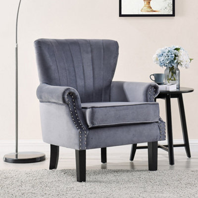 Product Name: Gray velvet wingback chair new arrivals